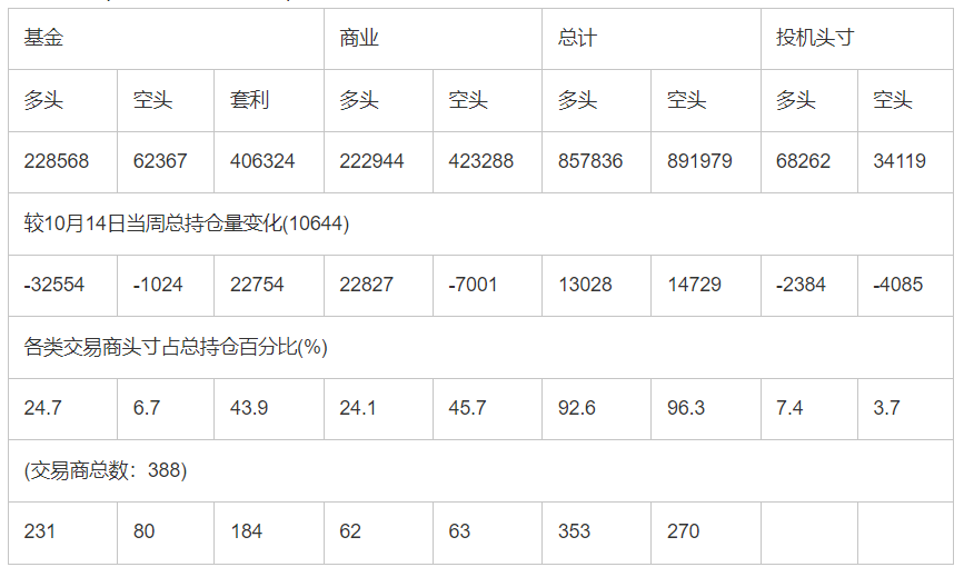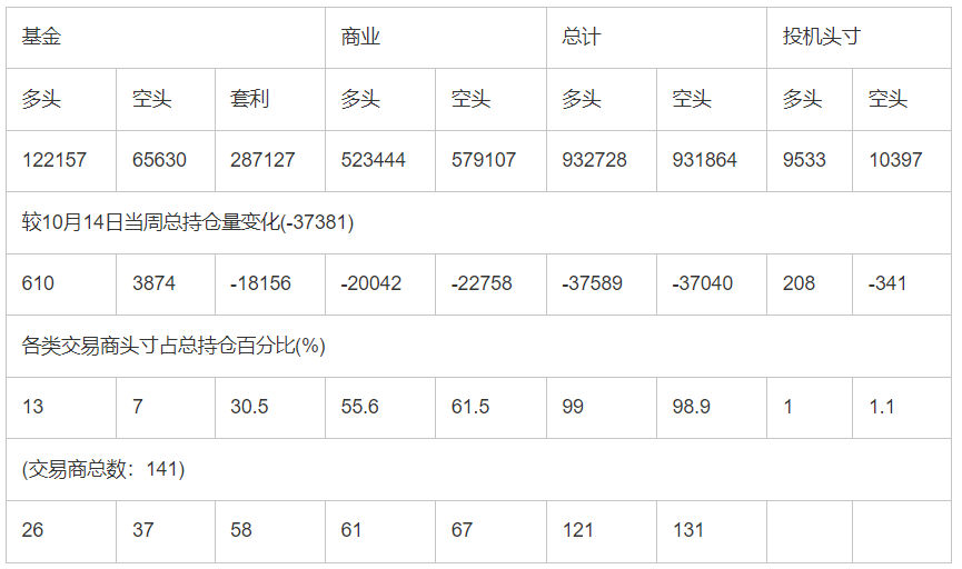 截止10月21日当周洲际交易所(欧洲)原油期货和期权分类持仓报告:       合约单位:(1000桶的合同)总持仓量:942261