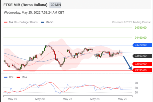 交易策略: 在 24220.00 之下,看跌,目标价位为 23600.00 ,然后为 23395.00 。