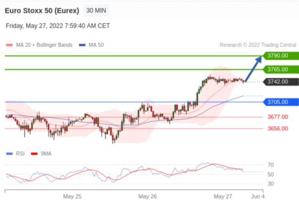 交易策略: 在 3705.00 之上,看涨,目标价位为 3765.00 ,然后为 3790.00 。