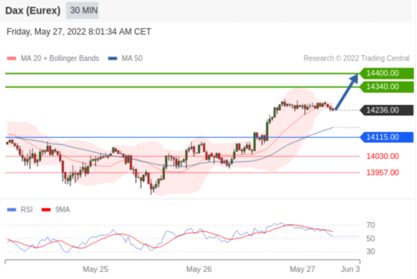 在 14115.00 之上,看涨,目标价位为 14340.00 ,然后为 14400.00 。
