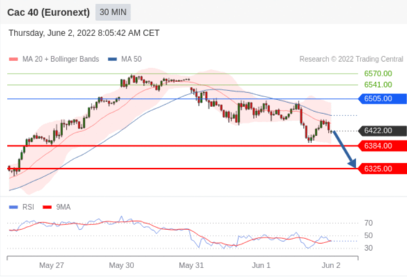 交易策略: 在 6505.00 之下,看跌,目标价位为 6384.00 ,然后为 6325.00 。