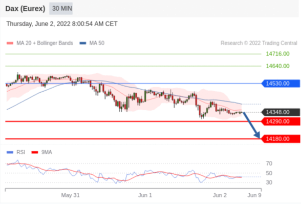交易策略: 在 14530.00 之下,看跌,目标价位为 14290.00 ,然后为 14180.00 。