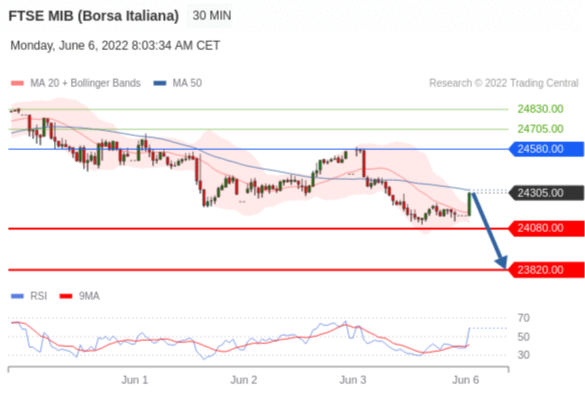 交易策略: 在 24580.00 之下,看跌,目标价位为 24080.00 ,然后为 23820.00 。