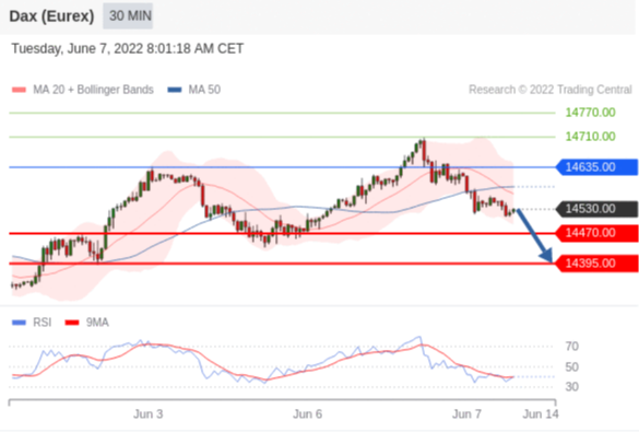 交易策略: 在 14635.00 之下,看跌,目标价位为 14470.00 ,然后为 14395.00 。