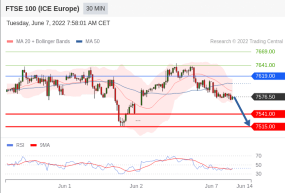 在 7619.00 之下,看跌,目标价位为 7541.00 ,然后为 7515.00 。