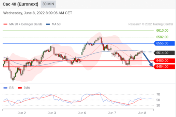 交易策略: 在 6555.00 之下,看跌,目标价位为 6480.00 ,然后为 6454.00 。