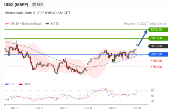 交易策略: 在 8824.00 之上,看涨,目标价位为 8920.00 ,然后为 8971.00 。
