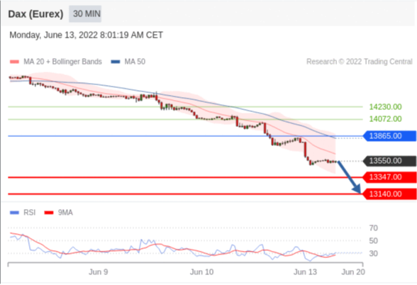 交易策略: 在 13865.00 之下,看跌,目标价位为 13347.00 ,然后为 13140.00 。