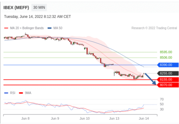 交易策略: 在 8390.00 之下,看跌,目标价位为 8155.00 ,然后为 8070.00 。