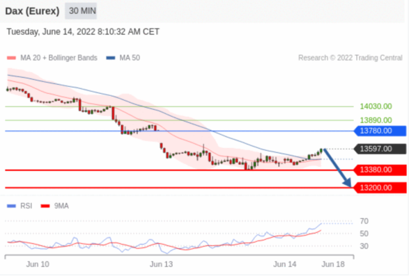 交易策略: 在 13780.00 之下,看跌,目标价位为 13380.00 ,然后为 13200.00 。