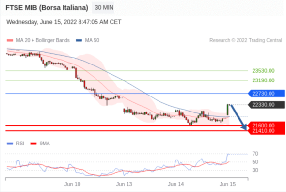 交易策略: 在 22730.00 之下,看跌,目标价位为 21600.00 ,然后为 21410.00 。
