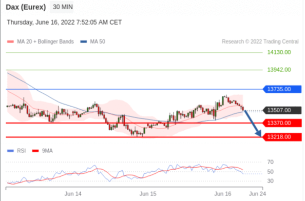 交易策略: 在 13735.00 之下,看跌,目标价位为 13370.00 ,然后为 13218.00 。