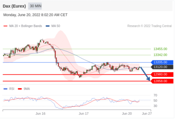 在 13205.00 之下,看跌,目标价位为 12980.00 ,然后为 12858.00 。