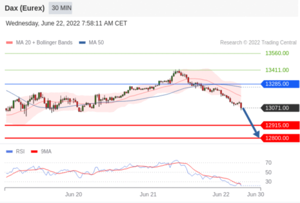交易策略: 在 13285.00 之下,看跌,目标价位为 12915.00 ,然后为 12800.00 。