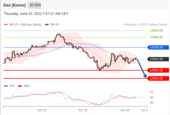 交易策略: 在 13235.00 之下,看跌,目标价位为 12955.00 ,然后为 12856.00 。