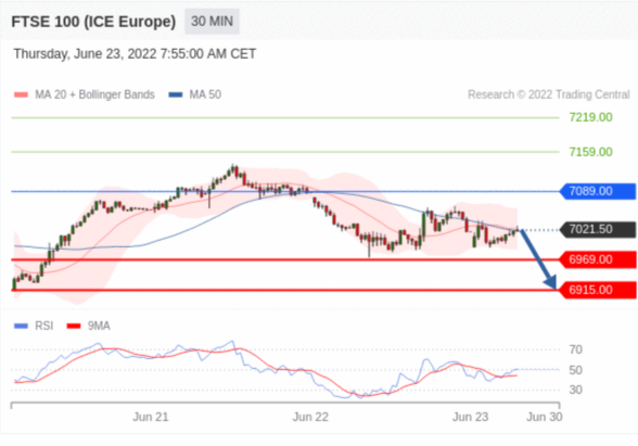 交易策略: 在 7089.00 之下,看跌,目标价位为 6969.00 ,然后为 6915.00 。