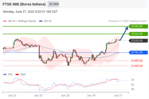 交易策略: 在 21741.00 之上,看涨,目标价位为 22310.00 ,然后为 22540.00 。