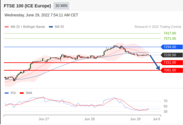 交易策略: 在 7294.00 之下,看跌,目标价位为 7151.00 ,然后为 7081.00 。