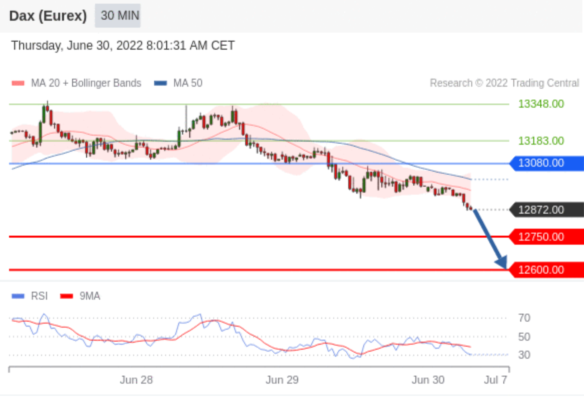 交易策略: 在 13080.00 之下,看跌,目标价位为 12750.00 ,然后为 12600.00 。