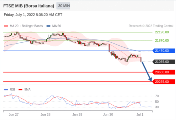 交易策略: 在 21470.00 之下,看跌,目标价位为 20630.00 ,然后为 20255.00 。