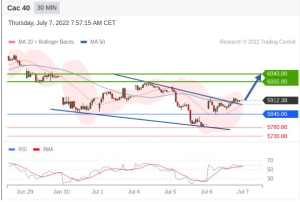 交易策略: 在 5845.00 之上,看涨,目标价位为 6005.00 ,然后为 6043.00 。