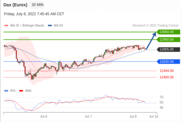 在 12630.00 之上,看涨,目标价位为 12950.00 ,然后为 13060.00 。