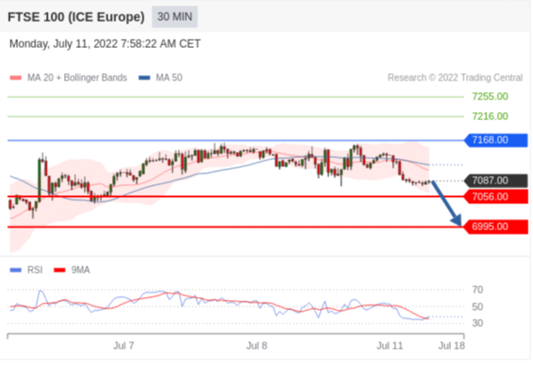 交易策略: 在 7168.00 之下,看跌,目标价位为 7056.00 ,然后为 6995.00 。