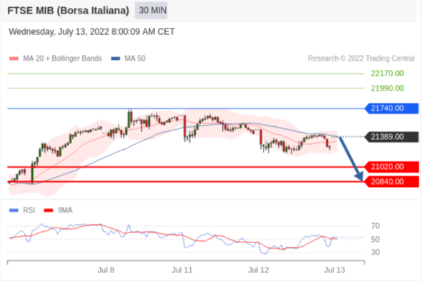 交易策略: 在 21740.00 之下,看跌,目标价位为 21020.00 ,然后为 20840.00 。