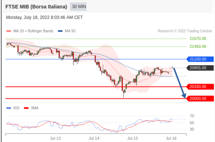 交易策略: 在 21100.00 之下,看跌,目标价位为 20330.00 ,然后为 20000.00 。