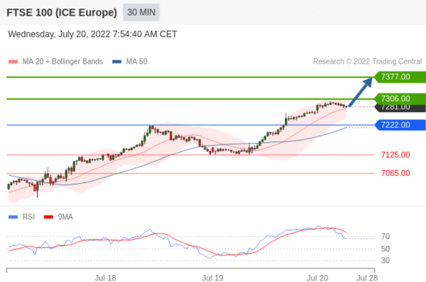 在 7222.00 之上,看涨,目标价位为 7306.00 ,然后为 7377.00 。
