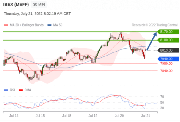 交易策略: 在 7940.00 之上,看涨,目标价位为 8100.00 ,然后为 8170.00 。