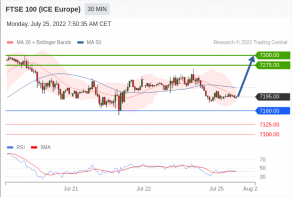 在 7160.00 之上,看涨,目标价位为 7275.00 ,然后为 7300.00 。