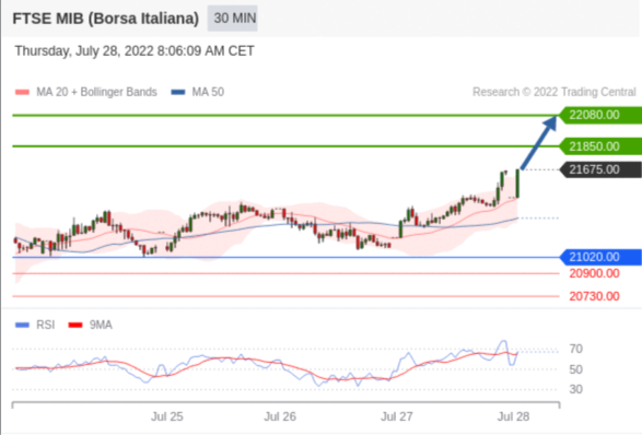 交易策略: 在 21020.00 之上,看涨,目标价位为 21850.00 ,然后为 22080.00 。