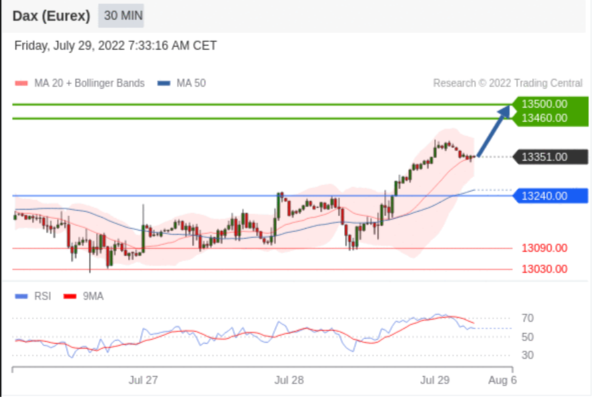 交易策略: 在 13240.00 之上,看涨,目标价位为 13460.00 ,然后为 13500.00 。