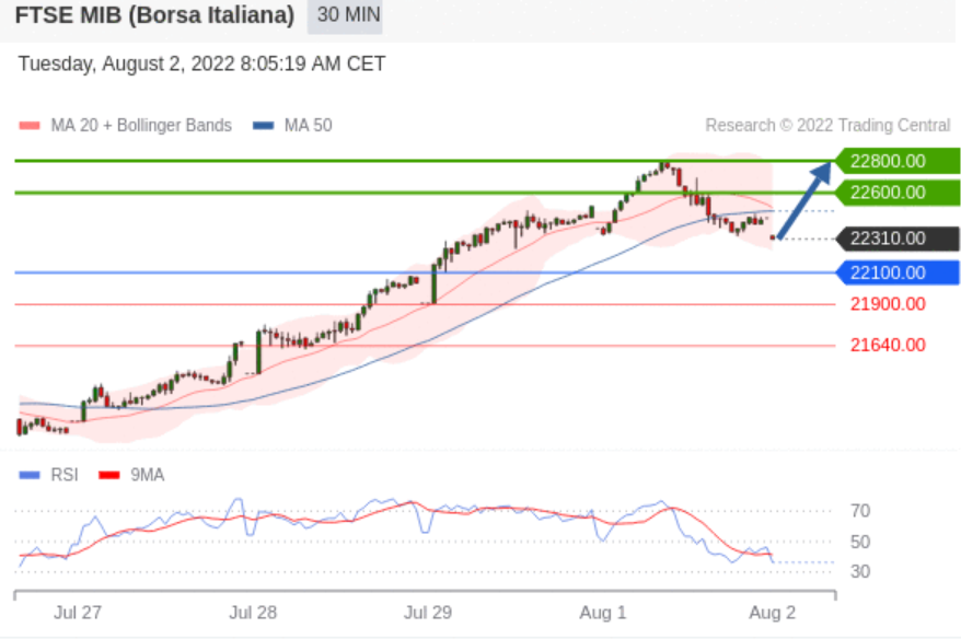 交易策略: 在 22100.00 之上,看涨,目标价位为 22600.00 ,然后为 22800.00 。