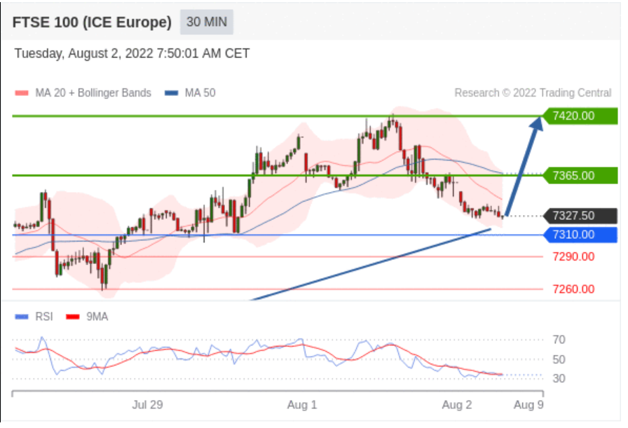交易策略: 在 7310.00 之上,看涨,目标价位为 7365.00 ,然后为 7420.00 。
