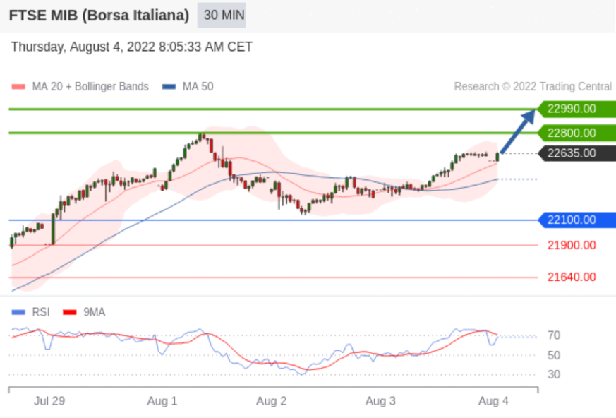 交易策略: 在 22100.00 之上,看涨,目标价位为 22800.00 ,然后为 22990.00 。