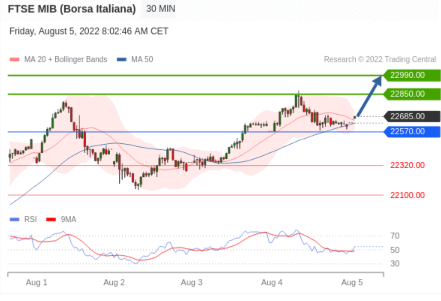 交易策略: 在 22570.00 之上,看涨,目标价位为 22850.00 ,然后为 22990.00 。