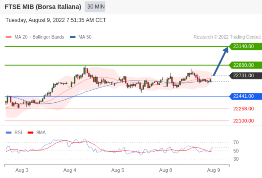 交易策略: 在 22441.00 之上,看涨,目标价位为 22880.00 ,然后为 23140.00 。