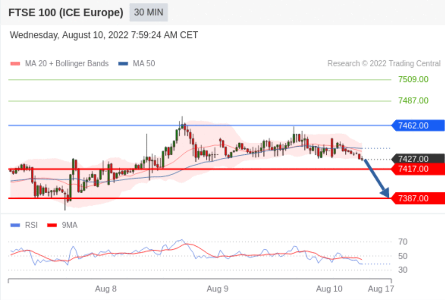 技术点评: 只要7462.00阻力位不被突破,向下跌破7417.00位置的风险很高。