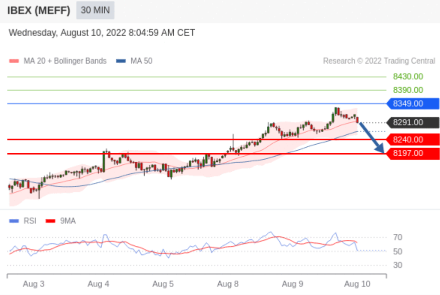 交易策略: 在 8349.00 之下,看跌,目标价位为 8240.00 ,然后为 8197.00 。