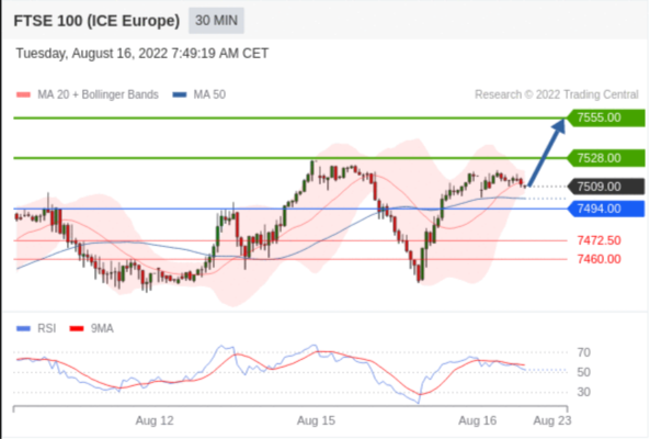 交易策略: 在 7494.00 之上,看涨,目标价位为 7528.00 ,然后为 7555.00 。