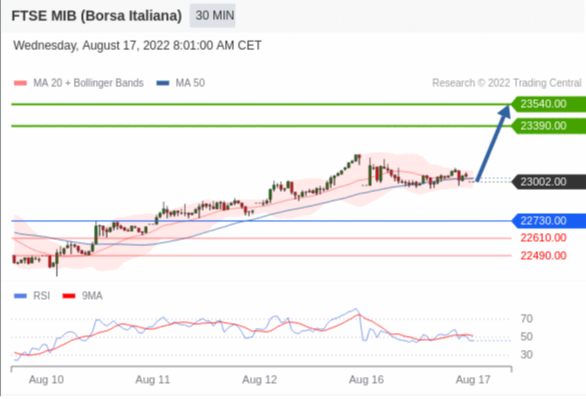 交易策略: 在 22730.00 之上,看涨,目标价位为 23390.00 ,然后为 23540.00 。