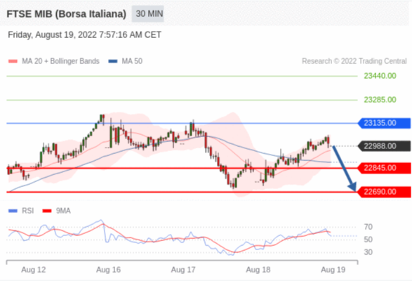 在 23135.00 之下,看跌,目标价位为 22845.00 ,然后为 22690.00 。