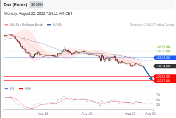 交易策略: 在 13608.00 之下,看跌,目标价位为 13326.00 ,然后为 13267.00 。