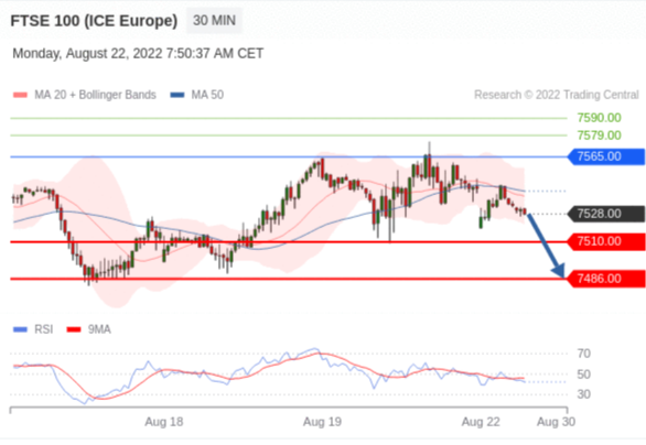 在 7565.00 之下,看跌,目标价位为 7510.00 ,然后为 7486.00 。