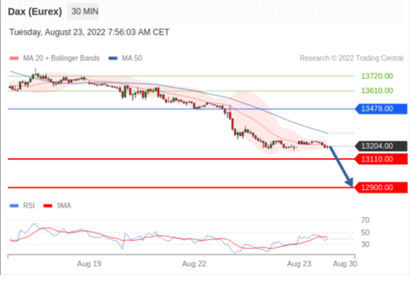 交易策略: 在 13478.00 之下,看跌,目标价位为 13110.00 ,然后为 12900.00 。