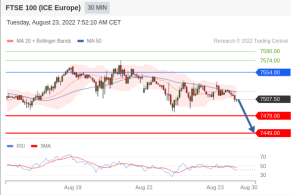 交易策略: 在 7554.00 之下,看跌,目标价位为 7479.00 ,然后为 7449.00 。