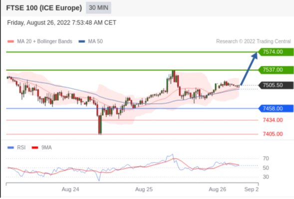 在 7458.00 之上,看涨,目标价位为 7537.00 ,然后为 7574.00 。