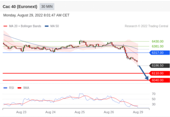 交易策略: 在 6317.00 之下,看跌,目标价位为 6110.00 ,然后为 6040.00 。